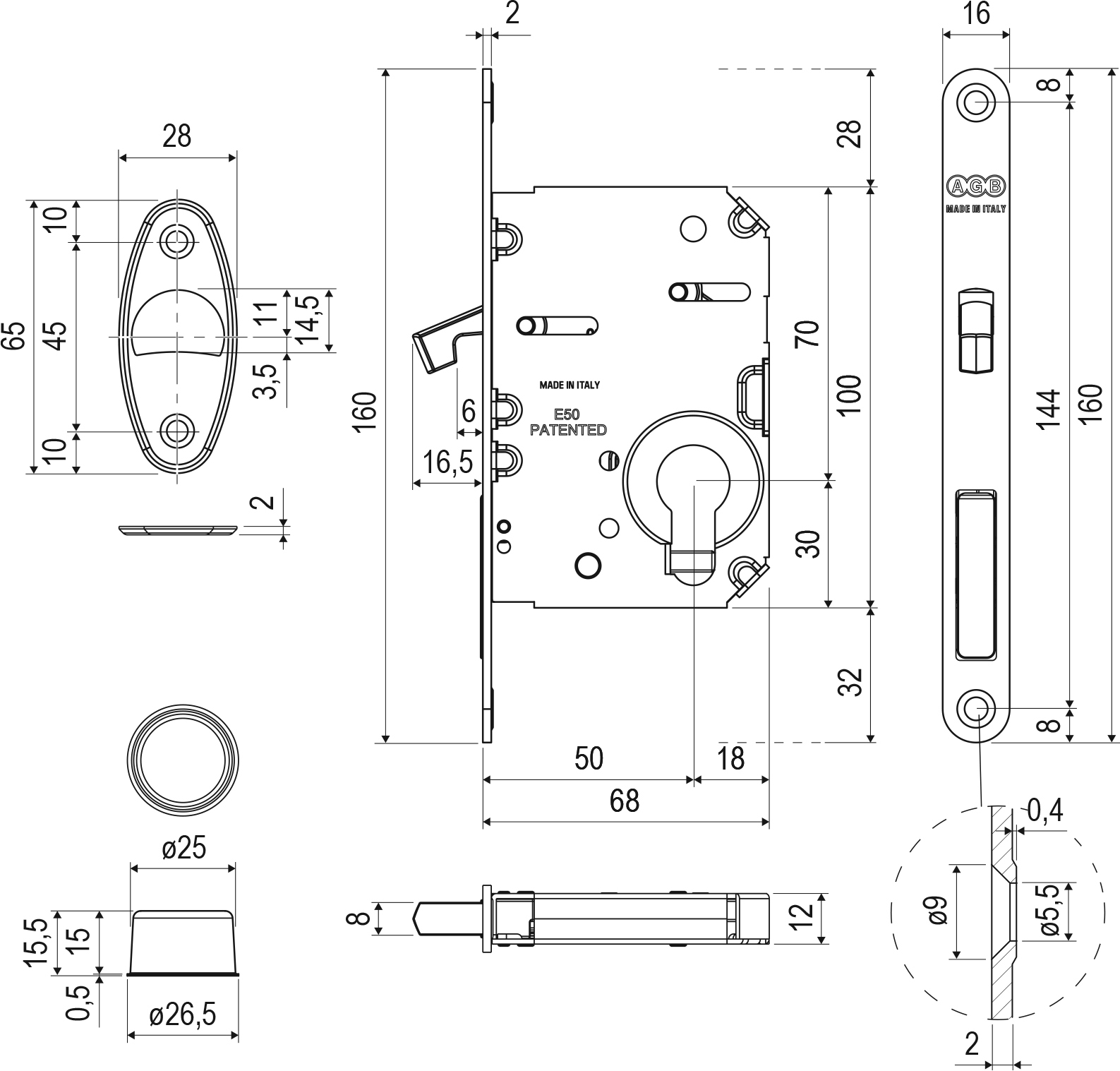The minimalist model for sliding doors is made of high-quality material - zamak and has a surface treatment. Open the sliding door easily with a simple pull of the shell.