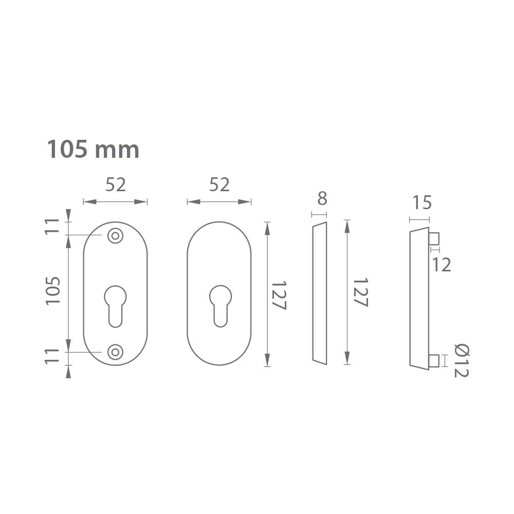 Additional rosette with PZ insert hole with 105mm screw hole spacing has a total length of 127mm and a thickness of 15mm.