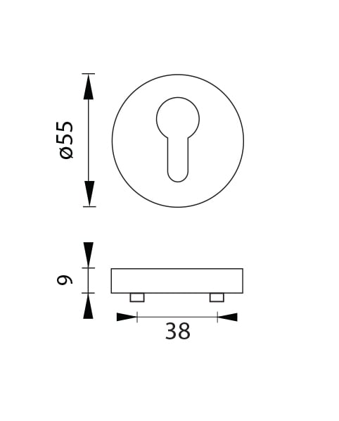 The round rosette is made of high-quality stainless steel, known as stainless steel, and is surface treated. The rosette has a diameter of 54 mm, a thickness of 9 mm and an oval hole for an interior key (BB), a hole for a cylinder insert (PZ) or a WC set with a built-in key. The package contains 2 pieces of rosettes (a pair) and the toilet rosettes are in the package as a set.