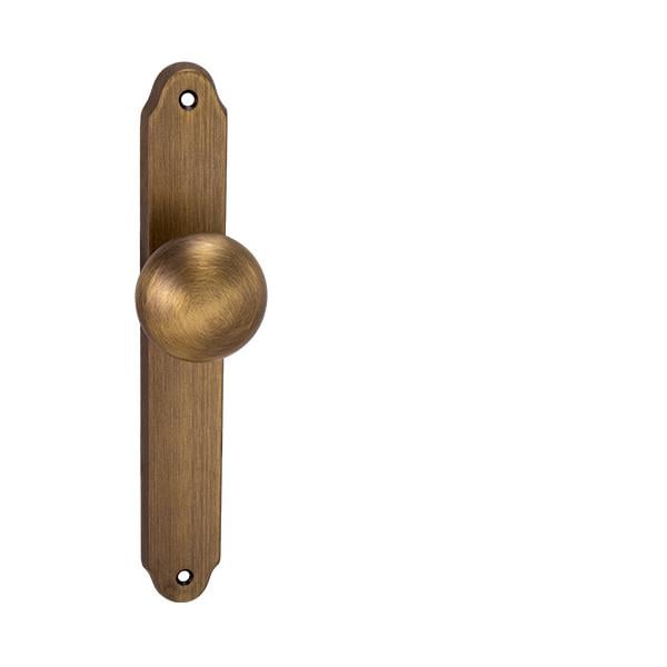 The door solid straight ball on the rustic shield is made of high quality materials - zamak and is surface treated. The ball has a diameter of 51 mm and the shield measures 36 mm x 238 mm.