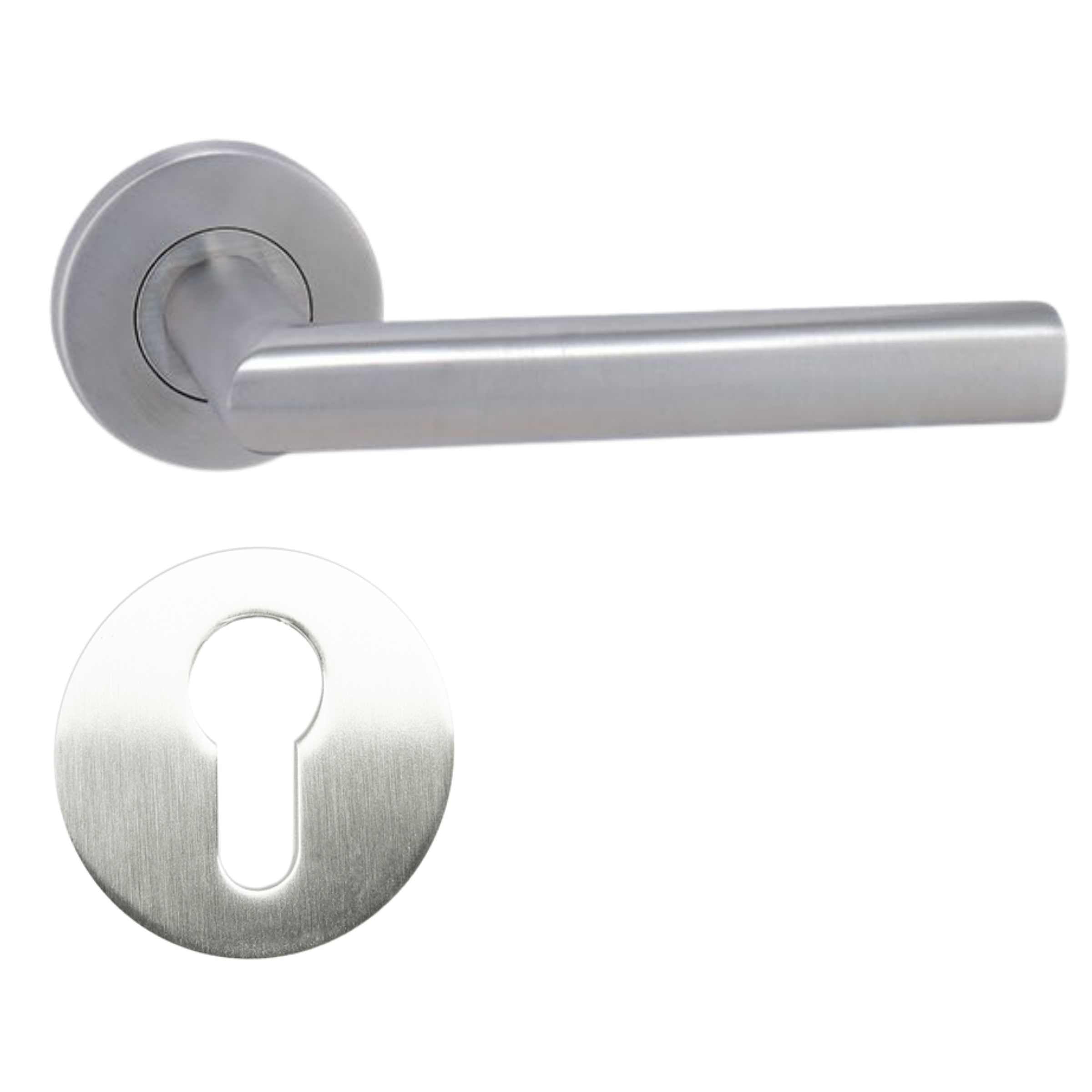 We offer the Favorit R fittings in Stainless Steel. You can choose rosettes from the variety of socket wrench, insert or WC. The hardware has a 24-month warranty and the price is for the entire set, i.e. for both sides of the door + mounting accessories.