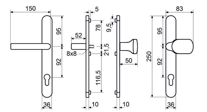 Designed specifically for plastic doors with 78-88mm thickness, the RHD.0031 handle/knob set offers adaptable installation with screws that can be shortened to a minimum of 40mm. This quality hardware includes an 8x8mm square pin with 92mm pitch spacing and comes complete with three M6x100mm connecting screws. A practical and reliable solution for enhancing your door's functionality and appearance.